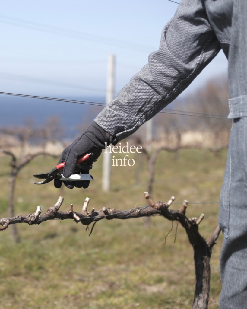 悴む寒さのなかでも、少しずつ季節の変化を感じるこの頃。冬の澄んだ空気のなかで、ワイン用ブドウ畑の手入れを行います。